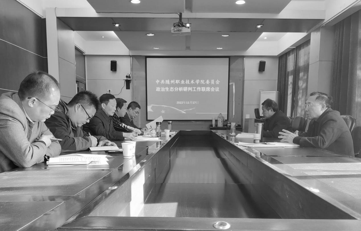 11月17日,我校组织召开党委政治生态分析研判联席会议,校纪委书记、监察专员李高东,工会主席张凤成,纪检监察机关、党委(校长)办公室、党委组织部、党委宣传部(统战部)、武装部(保卫处)、计划财务处等联席会成员单位负责人参加本次会议。