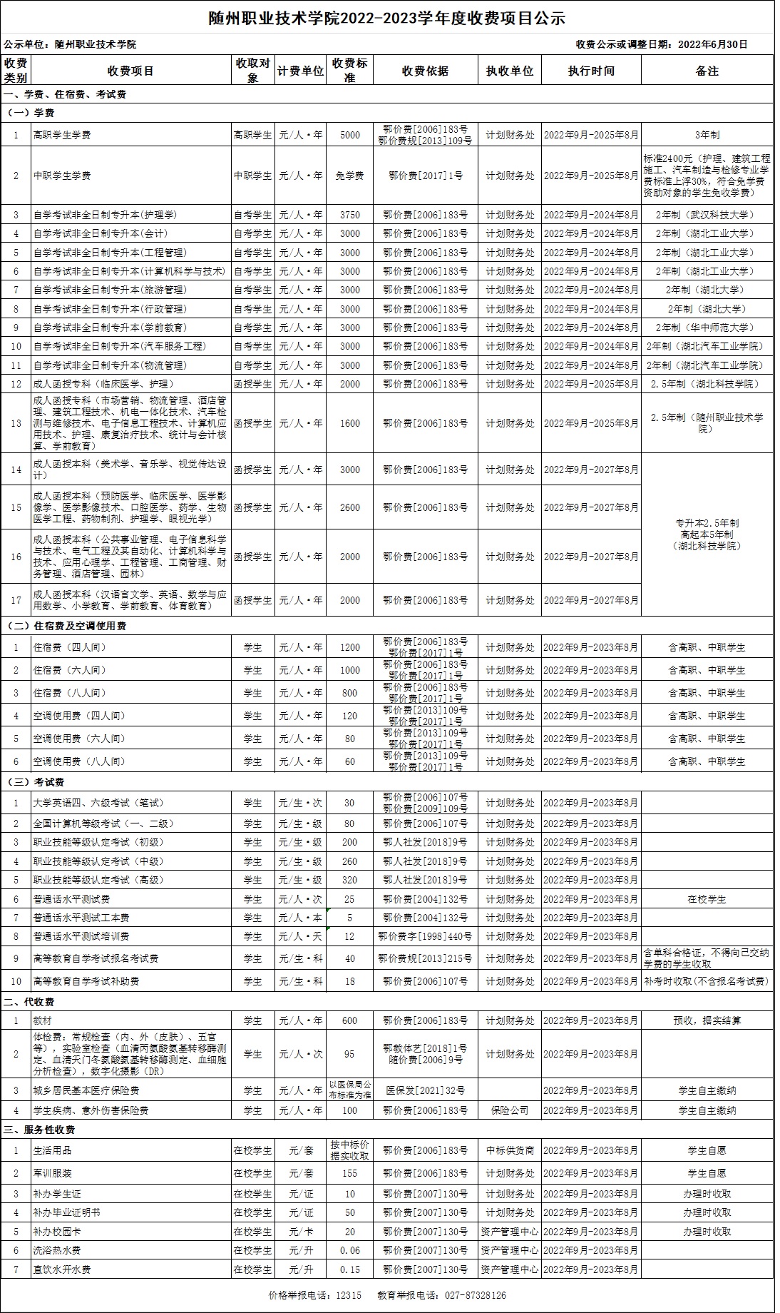 上一篇:随州职业技术学院2023-2024年收费项目公示